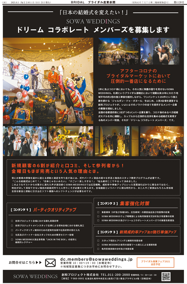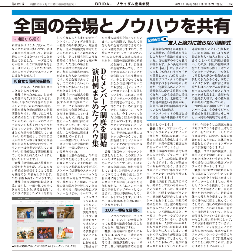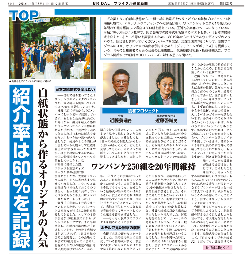 【メディア取材協力】『ブライダル産業新聞 トップインタビュー』に掲載されました