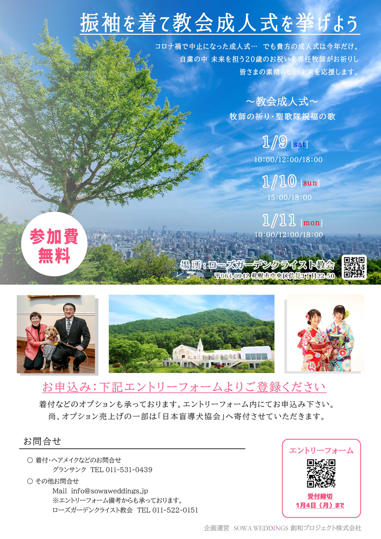 そこで、ローズガーデンクライス教会では、2021年に成人を迎える皆様に向けて