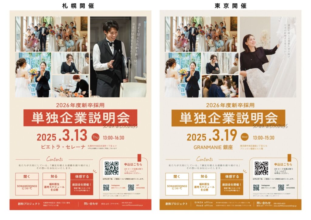 2026年度新卒採用に向けた『単独企業説明会』を札幌・東京 にて開催いたします。