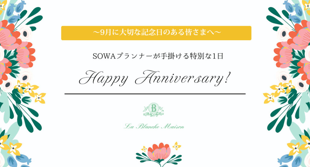 【SOWA WEDDDINGS】9月に記念日のある皆さまへ《Happy Anniversary!》のご案内