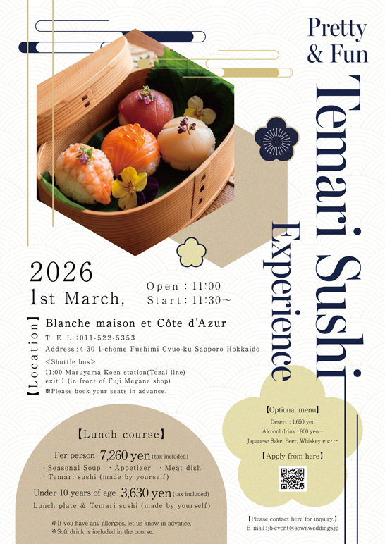 【ブランシュメゾン】<3/1(日)開催!手まりずし体験>インバウンド向けイベントをスタート