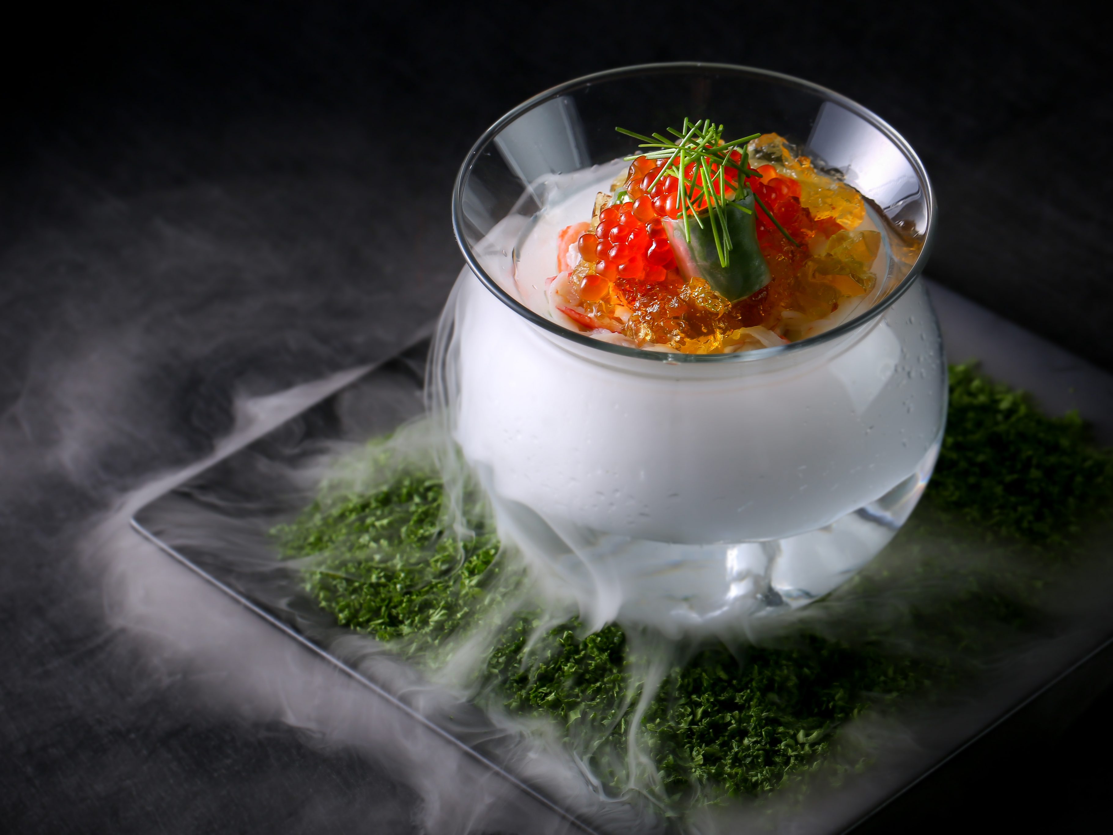 収穫の秋にふさわしい旬の食材を中心にジャルダン・ドゥ・ボヌールのシェフが自慢のフレンチを仕立てます。