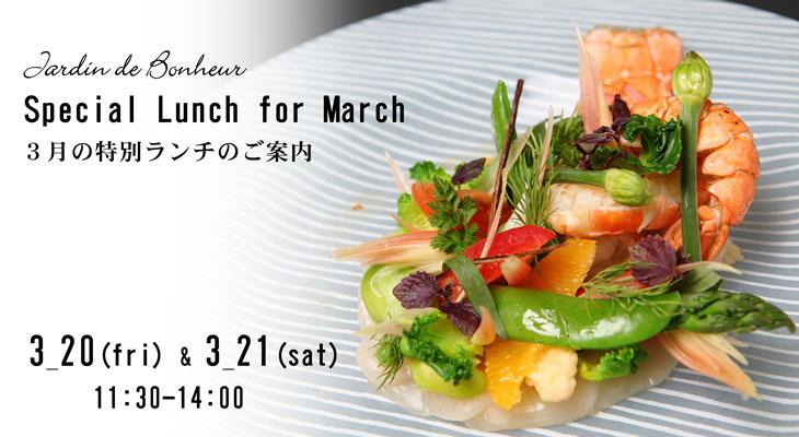 3月20日(春分の日)・21日(土)の2日間限定“Special Lunch for March“を開催いたします。