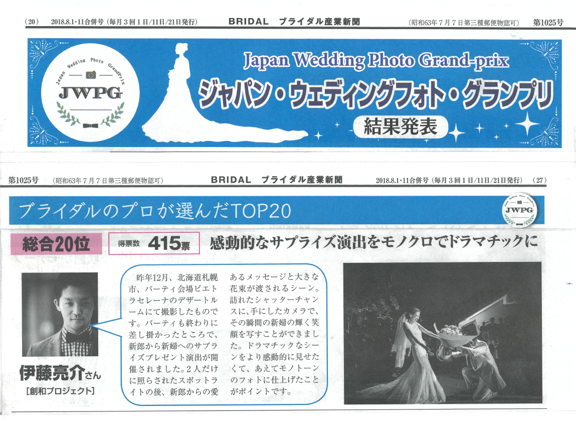 ブライダルのプロが選ぶジャパンウェディングフォトグランプリに