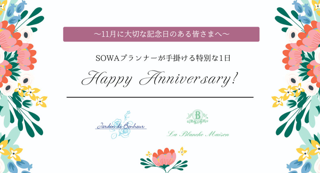 【SOWA WEDDDINGS】11月開催《Happy Anniversary!》のご案内