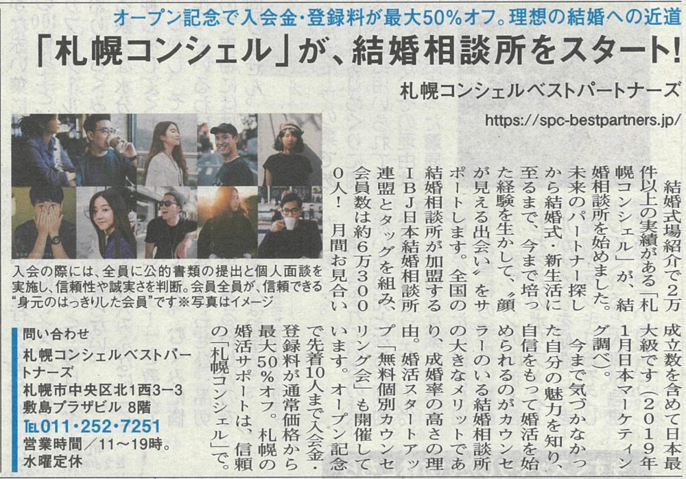9月17日発行オントナ せいかつ情報紙にて、札幌コンシェルベストパートナーズの