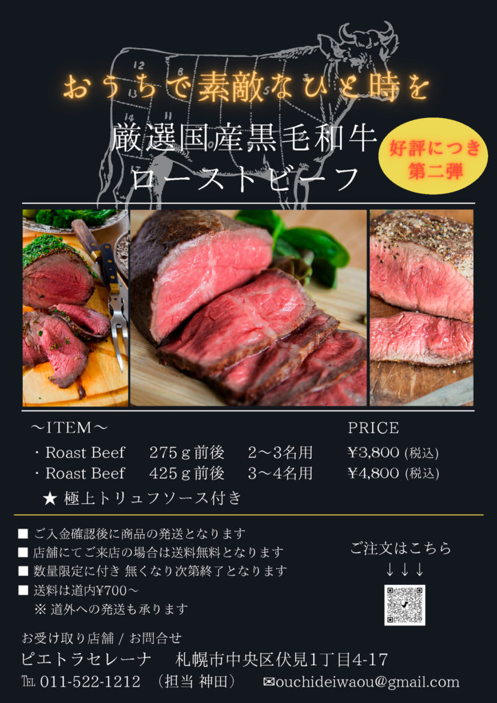 【SOWAレストラン】シェフ厳選 国産黒毛和牛ローストビーフ再販開始!