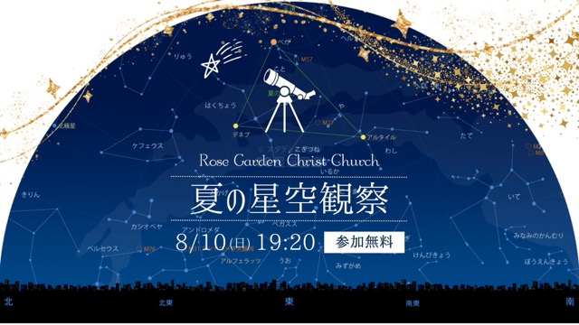 夏の大三角を中心とした夏の星座たちが空に広がって、天体に詳しい先生たちと一緒に望遠鏡を使って星座のたどり方や宇宙についてのお話をしてくれます
